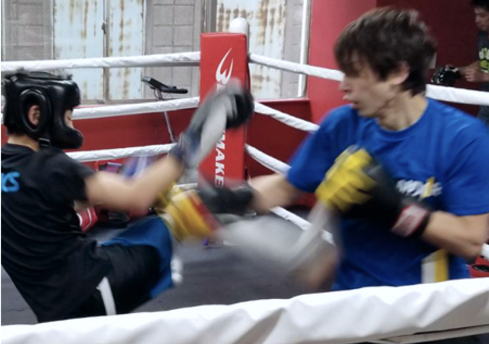 入門・初級で基礎と基本的な攻防を習得した後は、より実践的な攻撃・防御に取り組みます。内容はインストラクターや週によって異なりますが、当てない模擬スパーリングや2〜3割の力で行う軽いスパーリングを実施します。