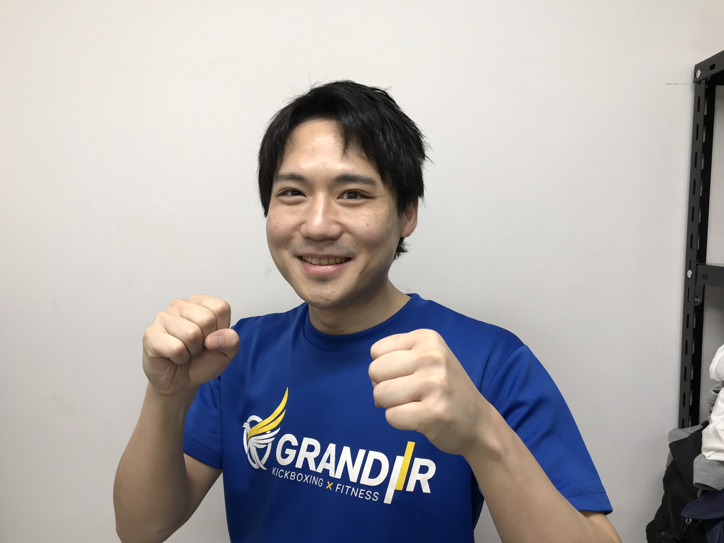 自身も仕事しながらキックボクシングを習い始めた経験を活かして、グランディール池袋に来てくださる会員さんにキックボクシングの効果を感じてもらえるようレッスン・指導をしています。