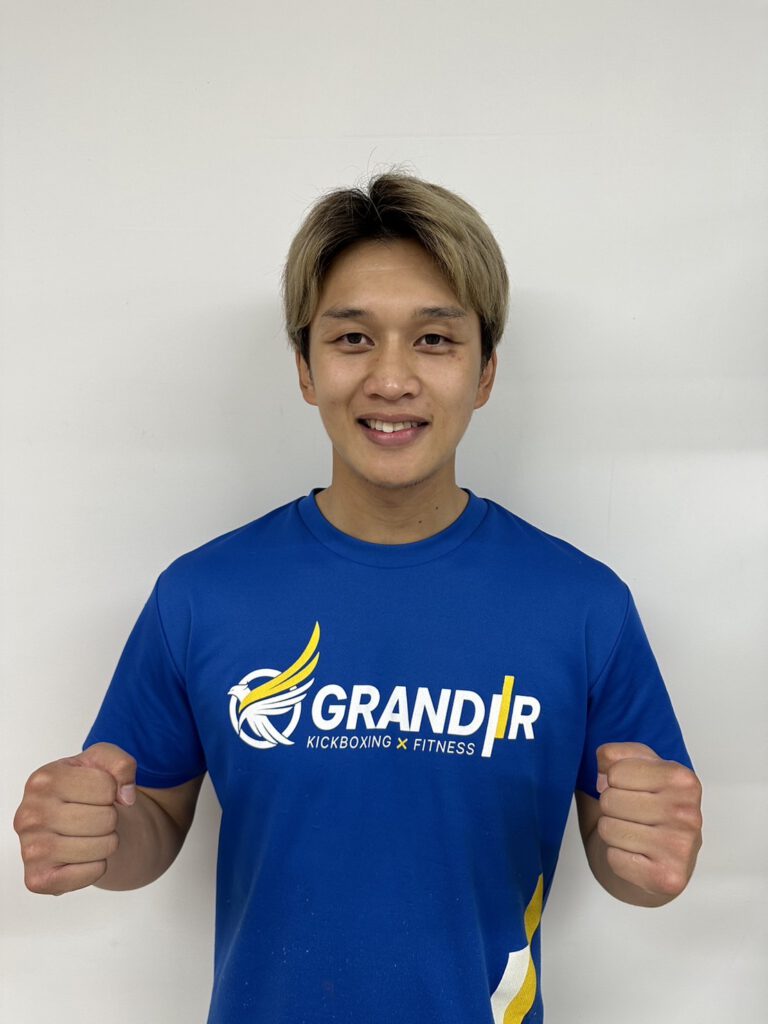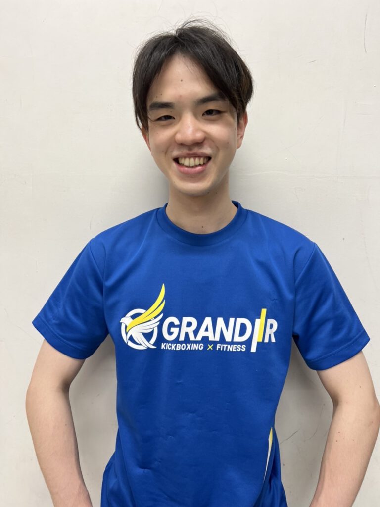 自身も仕事しながらキックボクシングを習い始めた経験を活かして、グランディール池袋に来てくださる会員さんにキックボクシングの効果を感じてもらえるようレッスン・指導をしています。